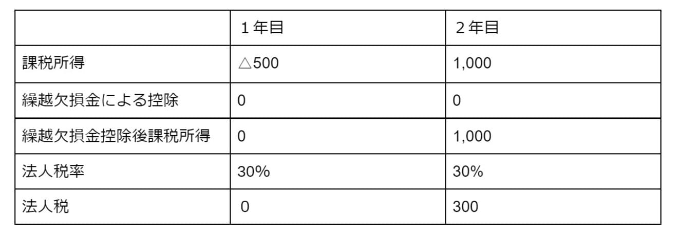 つまり、繰越欠損金制度を用いたほうが、2年目の法人税が150節約でき、税金支払上メリットがあるということです。