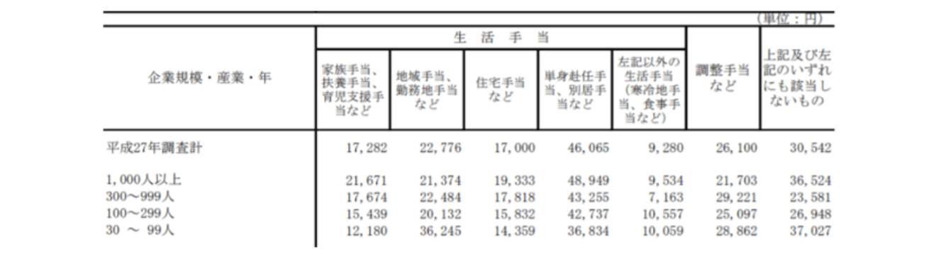しかしそうはいっても、1000人以上規模で66.9%となっているので、単身赴任手当は大体全体の7割弱の会社が支給していると考えて良いでしょう。