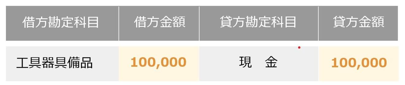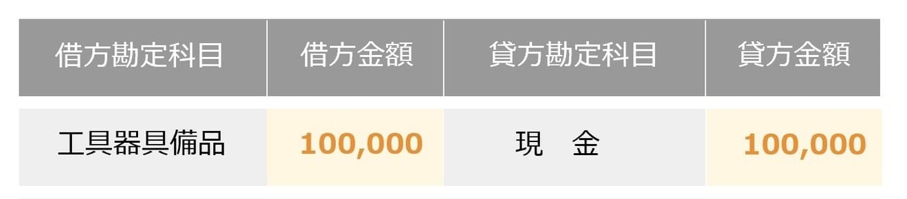 左側の(借方)に資産が増えた(パソコンを買い「工具器具備品」という資産が増えた)