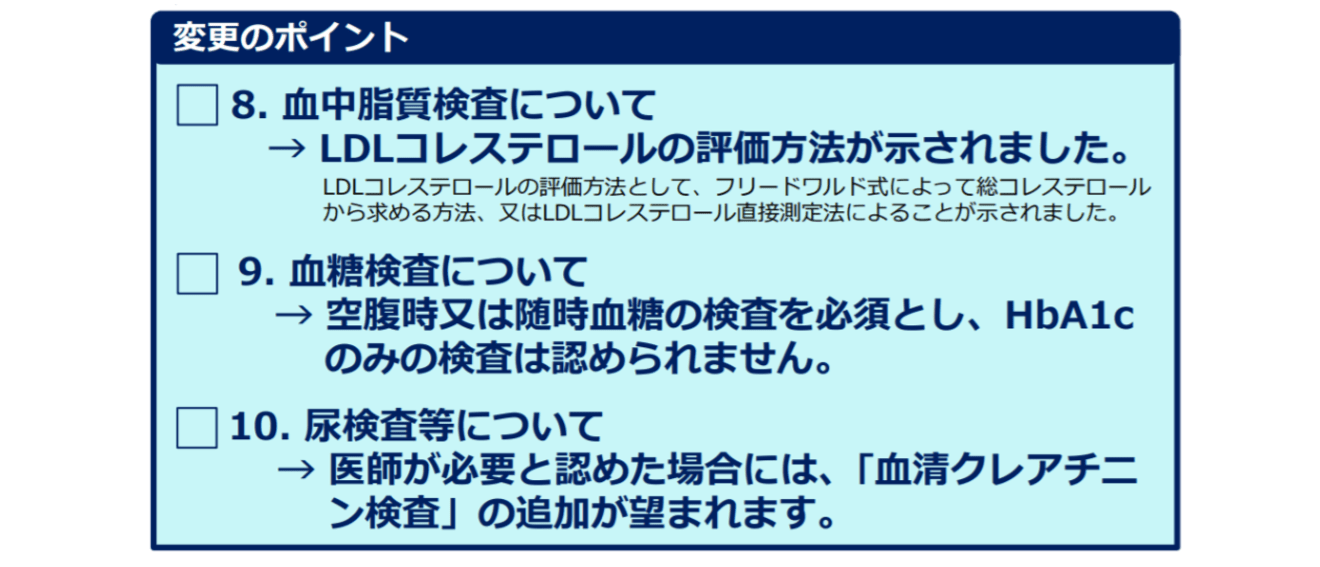 平成30年4月から、健康診断における血液検査の一部と尿検査の診断項目の取り扱いが一部変更になっています。