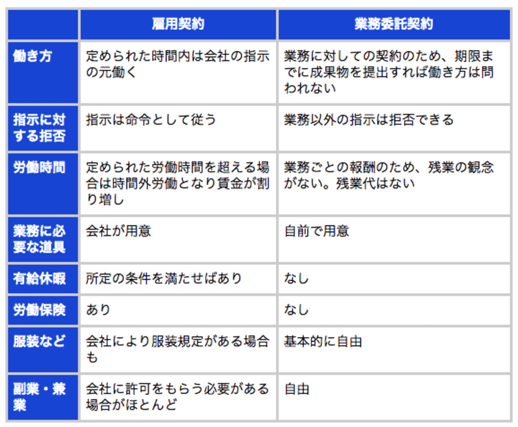 ふたつの働き方の違いを、以下にまとめてみました。