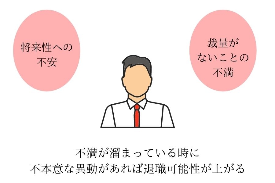 特に、今までいた部署で専門性を磨けると張り切っていた人は、これ以上、この会社にいても成長する機会はないと判断して、退職してしまう恐れも十分にあり得ます。