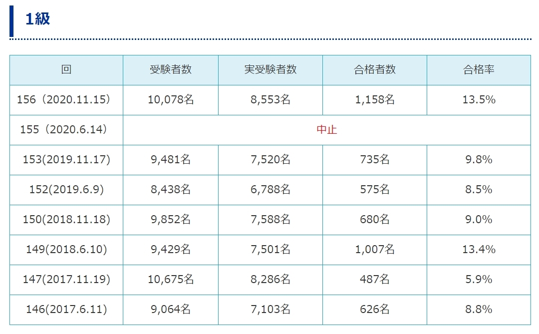 (2020年度はコロナで6月試験が中止になったため、特別に2月にも実施されました)