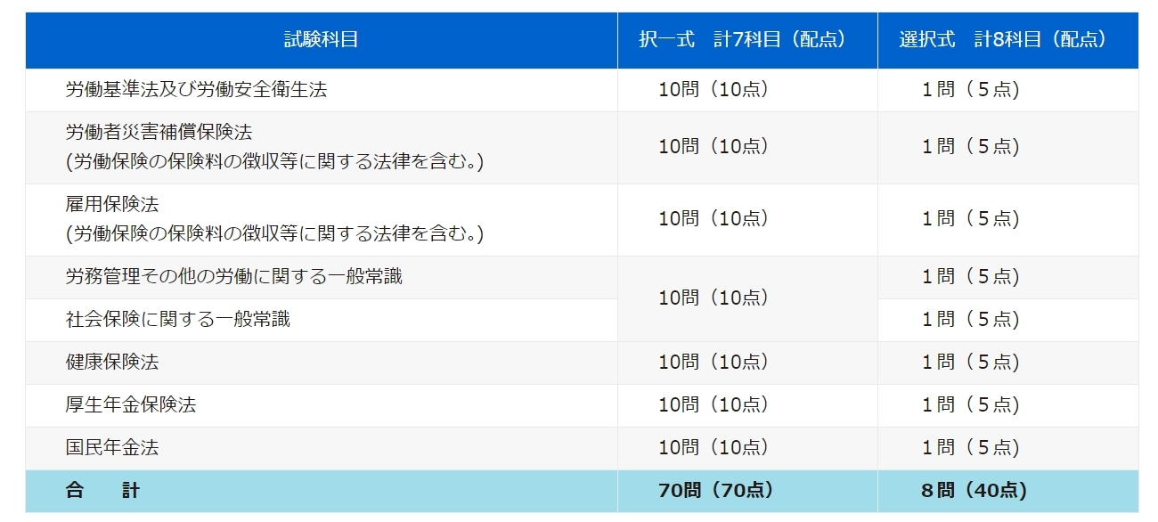 ただし、社労士試験では、科目ごとに合格基準点が設けられている点に注意が必要です。社労士試験の試験科目はかなり広範で、これら各科目について、合格基準点が設定されています。各科目とそれぞれの合格基準点については下記の画像をご覧ください。