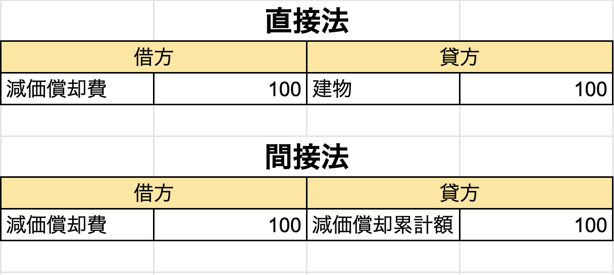 減価償却を行った資産の簿価及び減価償却累計額の貸借対照表への記載方法の種類として、直接法と間接法があります。