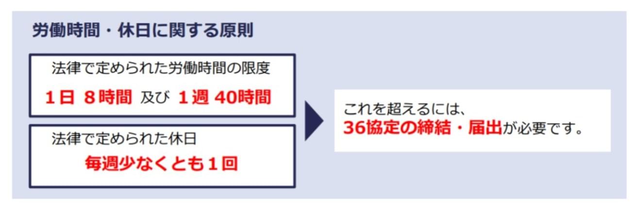会社は、法定労働時間である1日8時間・週40時間を超える時間外労働及び休日勤務などを命じる場合、労使間で「36(サブロク)協定」を締結し、所轄労働基準監督署に届出をしなければなりません。