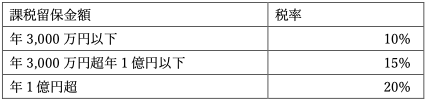 また、税率は以下の通りとなります。