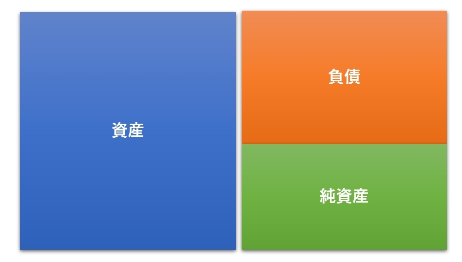 貸借対照表では、右側の「負債の部」と「純資産の部」の合計と左側の「資産の部」が等しくなります。