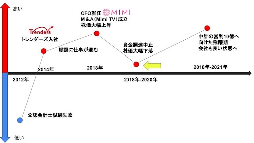 ―その後、資金調達中止、株価大幅下落で、キャリアグラフも下降気味になっているようですね。