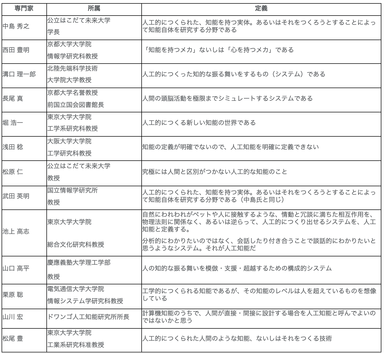 とはいえ、人工知能(AI)を研究していく上で、人工知能(AI)という言葉の定義が必要となるので、各専門家がそれぞれの立場で人工知能(AI)を定義しています。ここでは各専門家の定義を紹介しておきます。