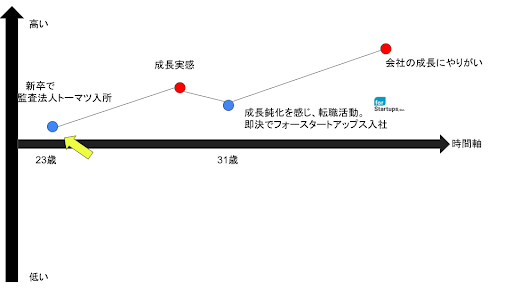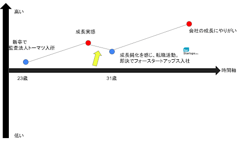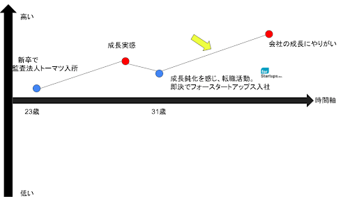 将来のキャリアに悩んでいたからですね。理由は二つありまして、一つ目は年功序列が強い企業なので、マネージャー以上のキャリアップを目指すとなると、絶対的な時間が必要なことです。二つ目は相手にするお客様の変化です。最初の頃は比較的経営に近い中小規模のクライアントを中心に働けたが、経験を積んでいくと、より大きな企業やテクニカルな仕事ができるものの、クライアント経営者との距離感がでてきたことがあります。やはりクライアントのパートナーとして働きたい思いが強かったので、そういう意味でモチベーションが下降していました。