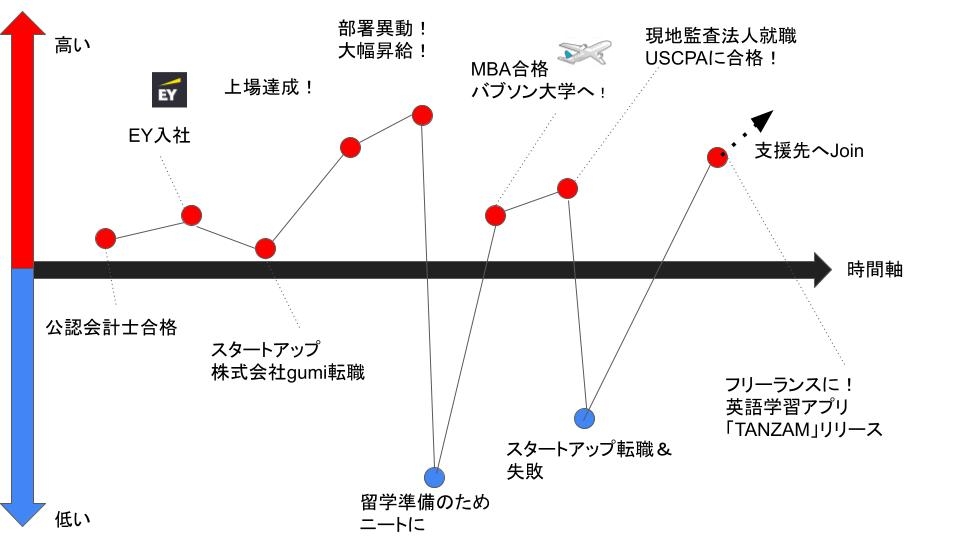 | 2020年冬 | IPOの夢を達成するためスタートアップに就職し、約半年で退職 |