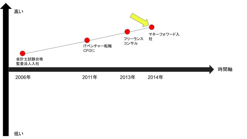 | 2014年 | マネーフォワード入社セールス&バックオフィス→プロダクトマネージャー→開発責任者→戦略責任者 |