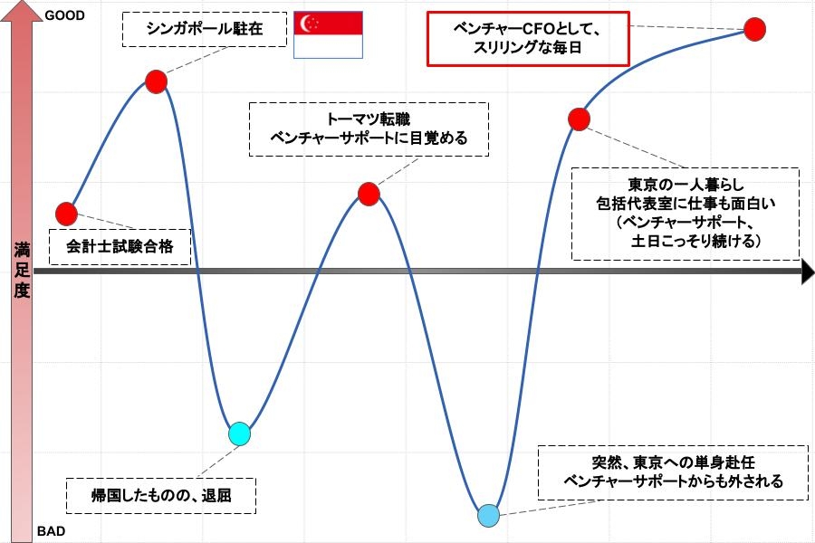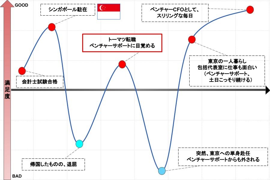 シンガポールでの経験を生かして、元駐在員の仲間たちと「アジア上場支援室」や「新興国コンサルティング室」などの新規部署立ち上げにも関わりましたが、やはり東京とくらべると大阪では海外案件が少なすぎました。また、監査も担当していましたが、ルーティンワークが苦痛になっていました。監査はある意味、変わらない、変えないことに価値があるのですが、シンガポールで自分の行動で変化を起こすエキサイティングな経験をしてきたので、監査が退屈に感じたのだと思います。そんな中、ベンチャー企業を支援するという非常にエキサイティングな業務があることを知り、監査法人ではその分野で圧倒的トップである「トーマツベンチャーサポート(現在のデロイトトーマツベンチャーポート)」を擁する有限責任監査法人トーマツに転職することにしました。