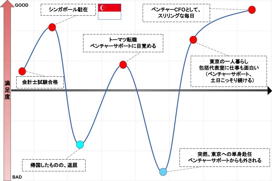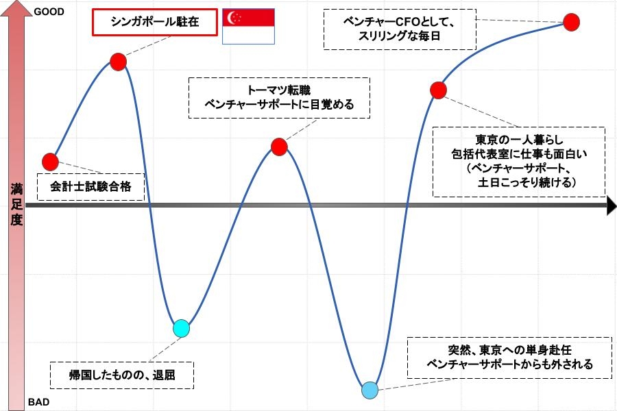 監査以外に仕事の幅が大きく広がったことや、人に頼られる立場になったことが満足度につながりました。シンガポールに行く前はマネージャーでしたが、シンガポールに行ったら受け取った名刺に「Executive Director」と書いてありました。シンガポールのアーンスト・アンド・ヤングで日本人といえば僕だったのです。現地のボスから全幅の信頼を得ているという感覚も、それまでには感じたことのないものでした。世界を股にかけて仕事したいという憧れへの第一歩を踏み出せたような気になっていました。