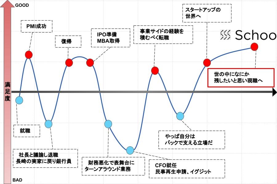 現在は株式会社Schoo(スクー)で取締役CFOを勤め、「インターネットでの学びや教育を起点とした社会変革」に取り組んでいます。