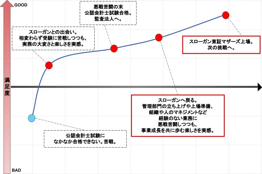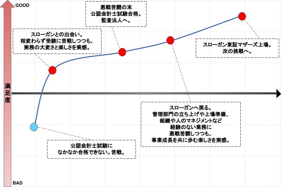 別のある会社のCFOの方からは、「取締役になるということは、社長と同じ目線でミッションの実現に向かう姿勢を持つことだ」と助言をいただきました。その言葉を聞いたとき、今までの自分は「代表の言うことを叶えたい」という、ある種従属的な思考をしていたことに気が付きました。監査法人からスローガンに転職したのは、当事者として事業成長を担っていくことの面白さやワクワク感を感じたからだったはずなのに、その意識が欠落していたんです。