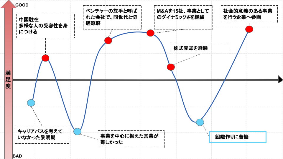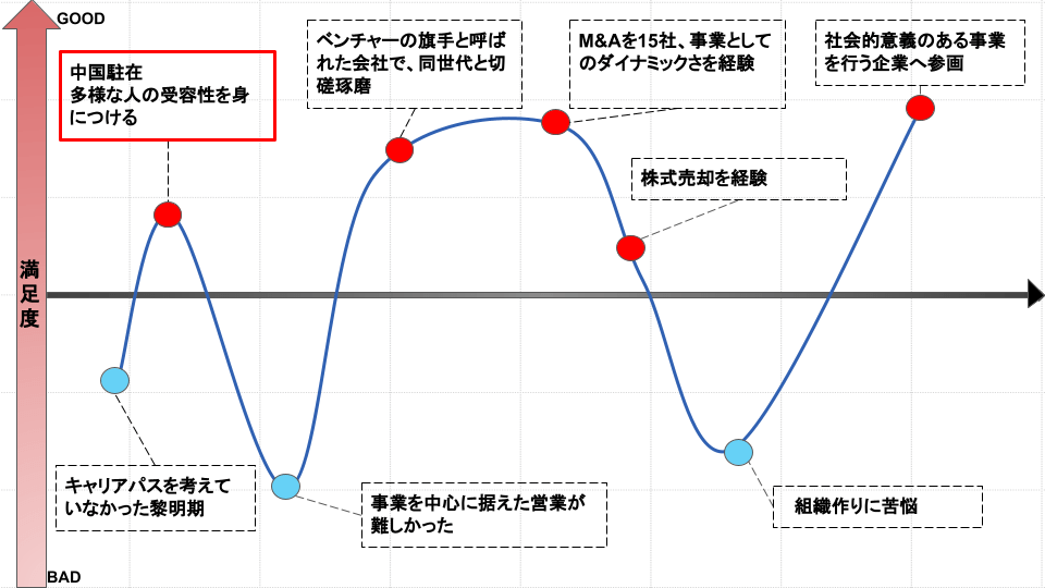 ー中国から戻ってきた後に転職していますが、ここでキャリアグラフがぐっと下がっていますね。なぜでしょうか。
