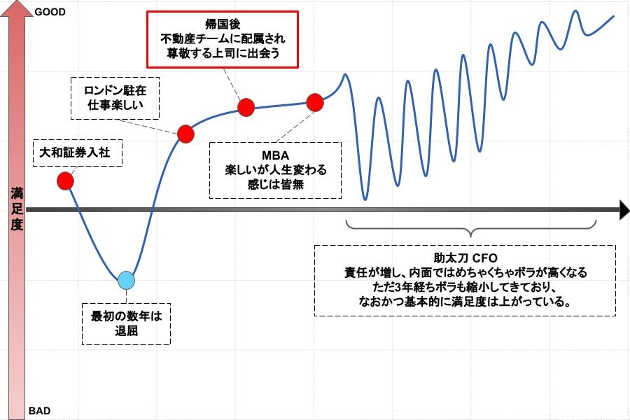 ―「帰国後、不動産チームに配属され尊敬する上司に出会う」ということで満足度が上がっていますね。