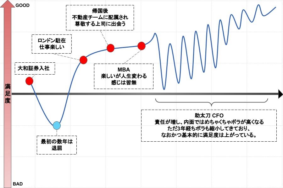 ―キャリアグラフでは満足度が細かく上下はしていますが、俯瞰して見ると上昇していますね。