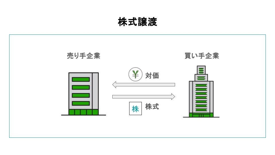 M&Aには企業や事業を統合する買い手企業と統合される売り手企業が存在しますが、株式譲渡は売り手企業が株式を買い手企業に売却することで、経営権を移す方法を意味します。