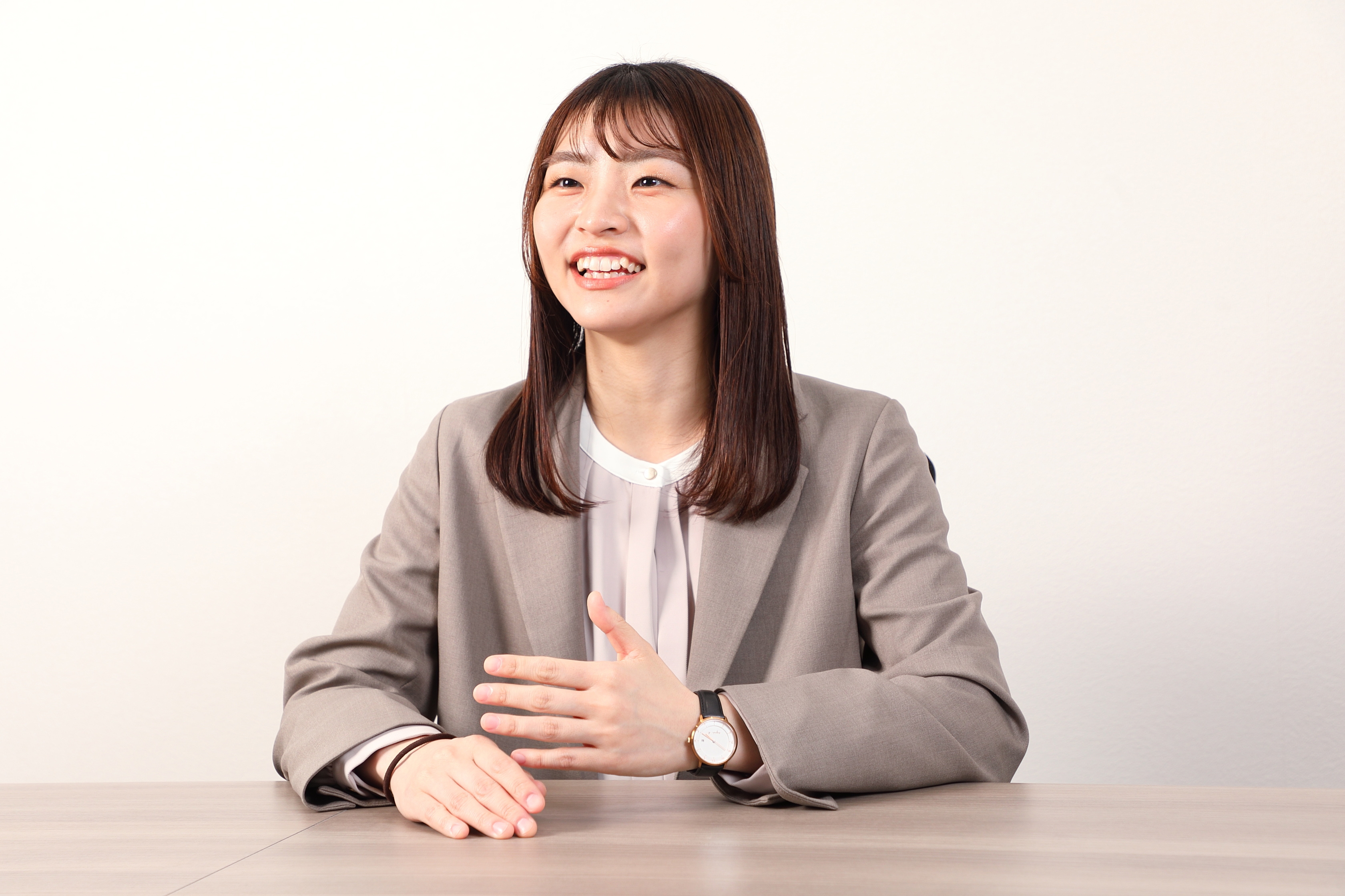 八百井: まだ入所して一年経っていないので、わからないことがたくさんあってその都度自分で調べたり先輩たちに質問しながらやっていますが、少しずつ経験を積み重ねていく中で、昨日までできなかったことが自分一人で処理できるようになったりしていて、そういった自分の成長を見て取れるのは嬉しいですし、やりがいを感じます。今は先輩と一緒にお客さんを回っていますが、今後は先輩なしでお客さんに説明したり提案できるようになりたいなと。まずは着実に力をつけて一人で対応できるようになることが次のステップだと考えています。