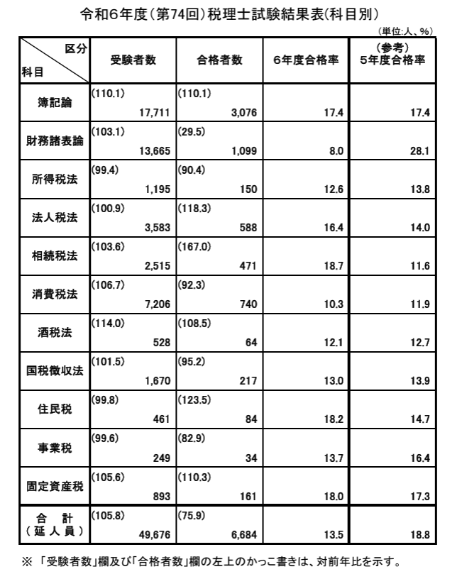 出典:令和6年度(第74回)税理士試験結果|国税庁HP