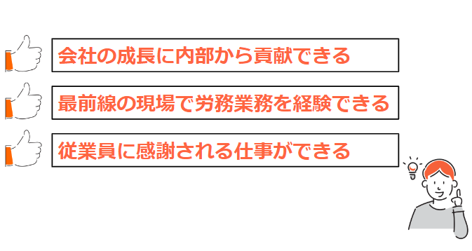 企業の労務として働くことで、様々な課題を知ることができたり、その課題解決に直接携わることができます。