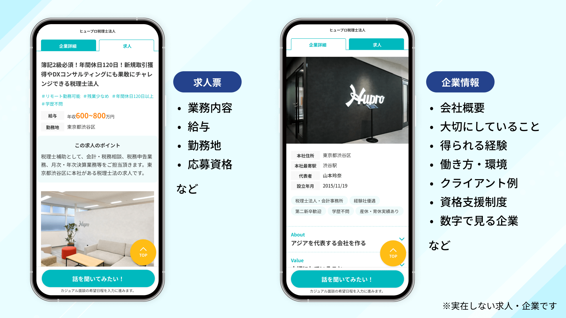ヒュープロダイレクトのスカウトに文章はありません。スカウトの内容は、企業から提案された求人票と企業情報です。この企業情報は、当社ヒュープロが直接企業に取材をしたリアルな情報で、求人票では分からない職場の雰囲気や年齢層、インタビュー内容などを掲載しています。そのためこの情報を確認するだけで、わざわざ企業のホームページを探さなくても、企業理解が深まります。「もっと知りたい」「自分に合っているかも」と思ったらぜひカジュアル面談に進んで下さい。