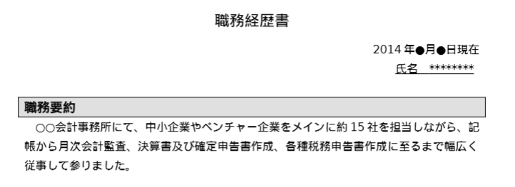 会計事務所で働くにあたっての強みになる職歴は漏らさず書きつつ、他の職歴は簡略にすることを意識しましょう。