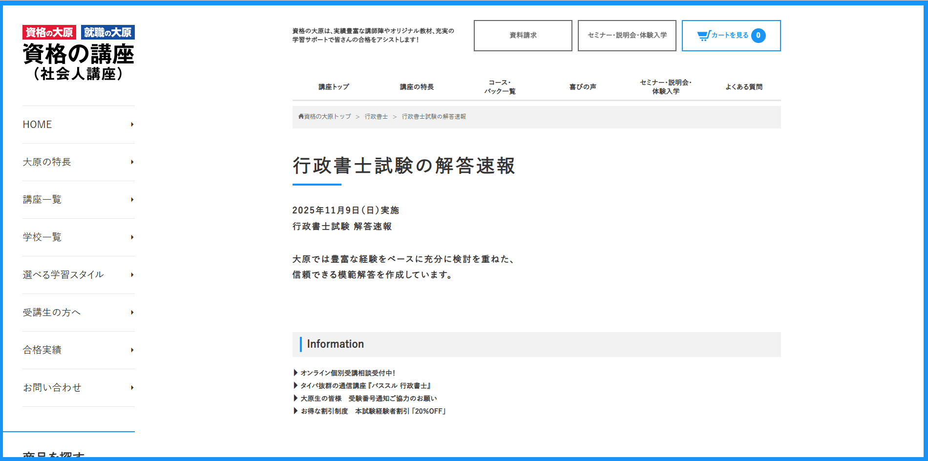 大原では、試験当日11月9日(日)19時から解答速報が順次公開されます。