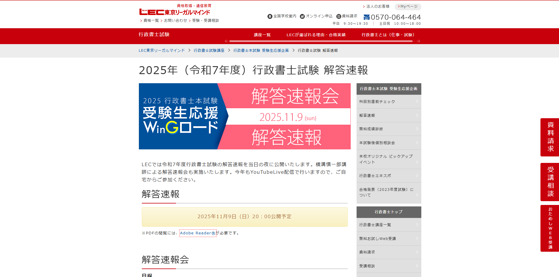 LECでは、試験当日11月9日(日)の20時に解答速報が公開されます。