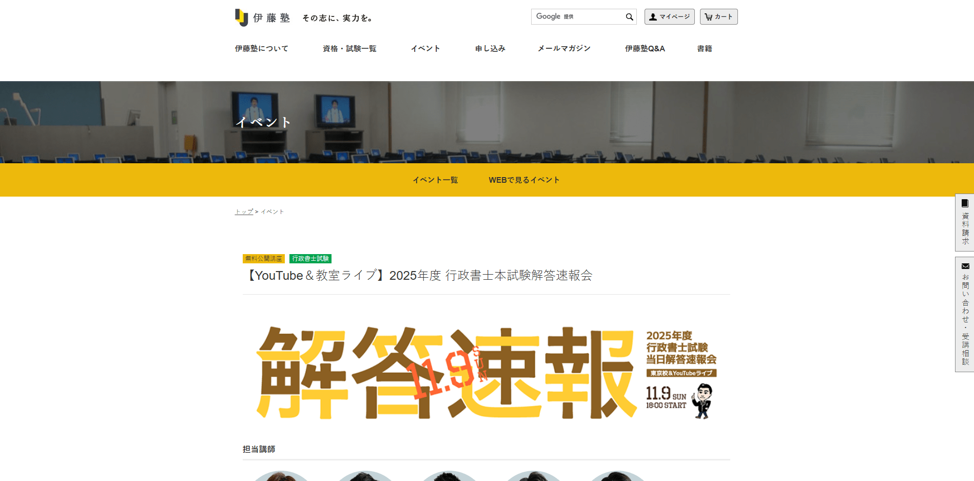 伊藤塾では、試験当日の11月9日(日)の18時から、YouTube Liveで速報会が開催されます。