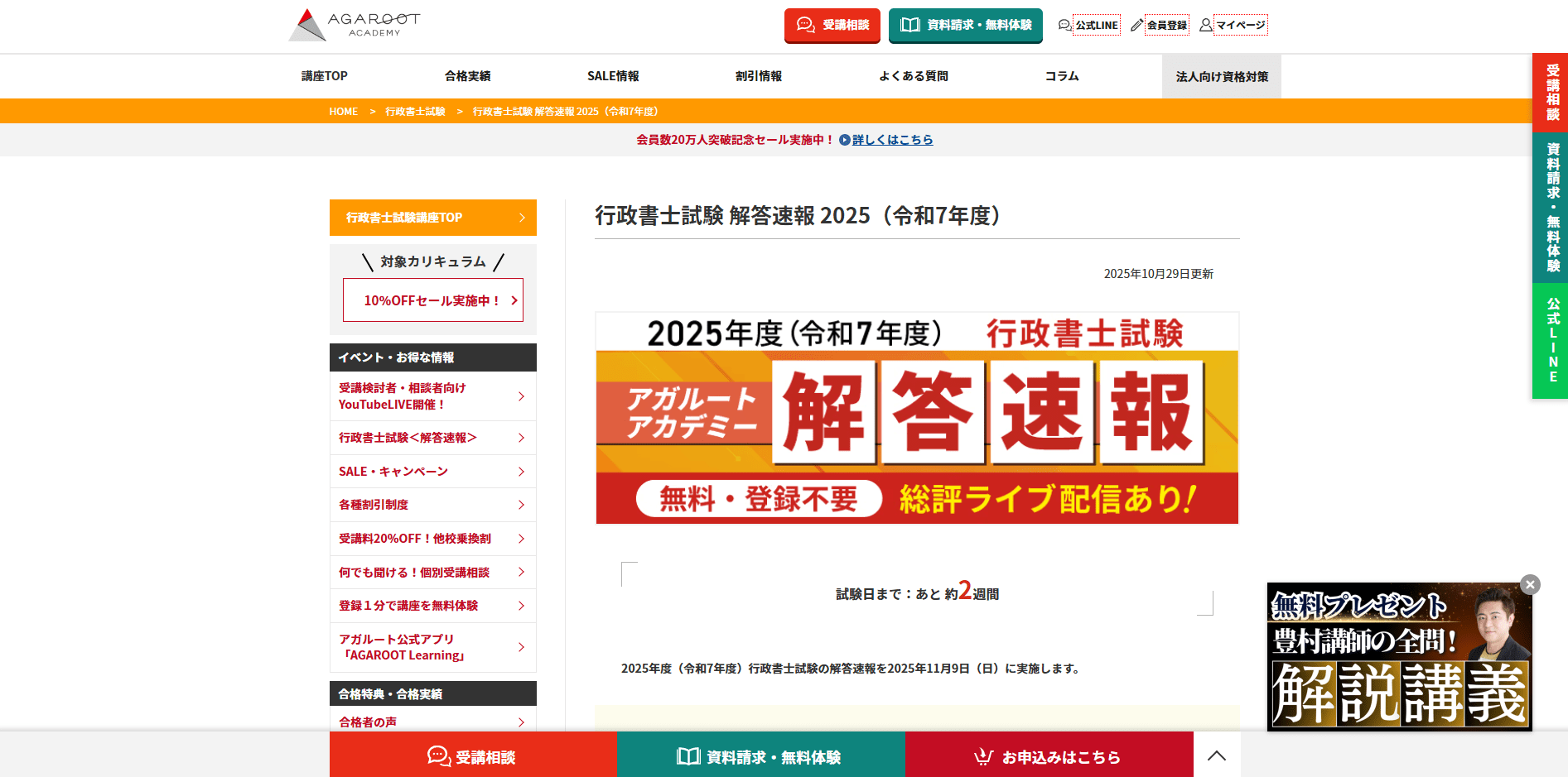 アガルートでは、試験当日11月9日(日)の18時から解答速報が公開されます。
