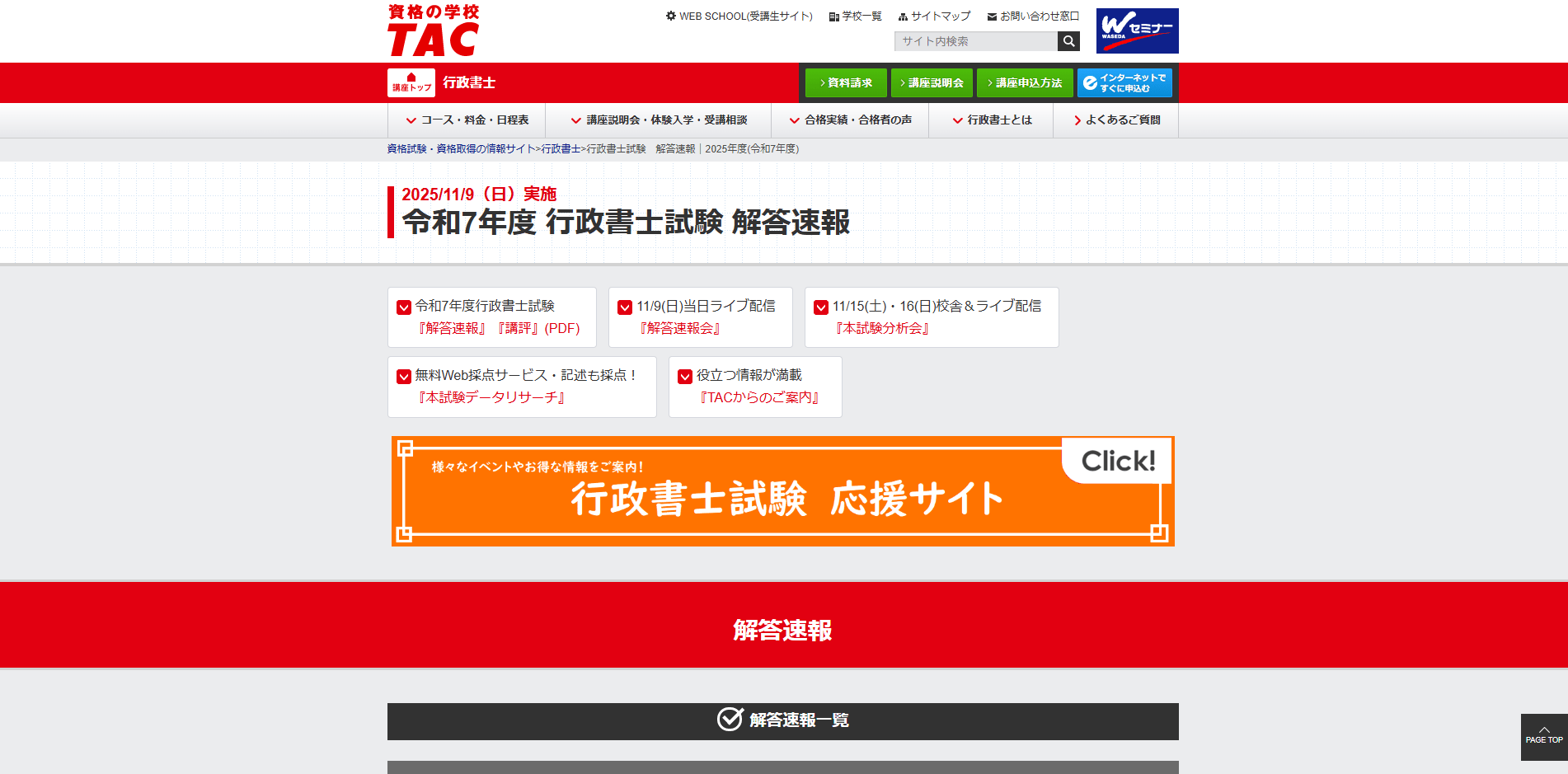 | 速報URL | https://www.tac-school.co.jp/kouza_gyosei/sokuhou.html |