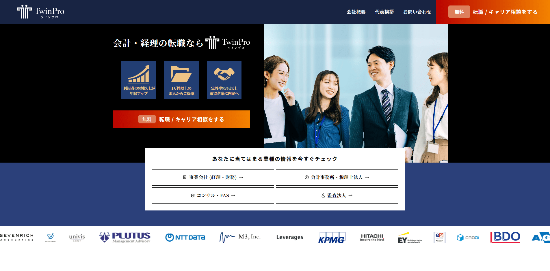 ツインプロは、税理士・会計士を中心に、中小会計事務所や事業会社の求人に強みを持つ転職エージェントです。