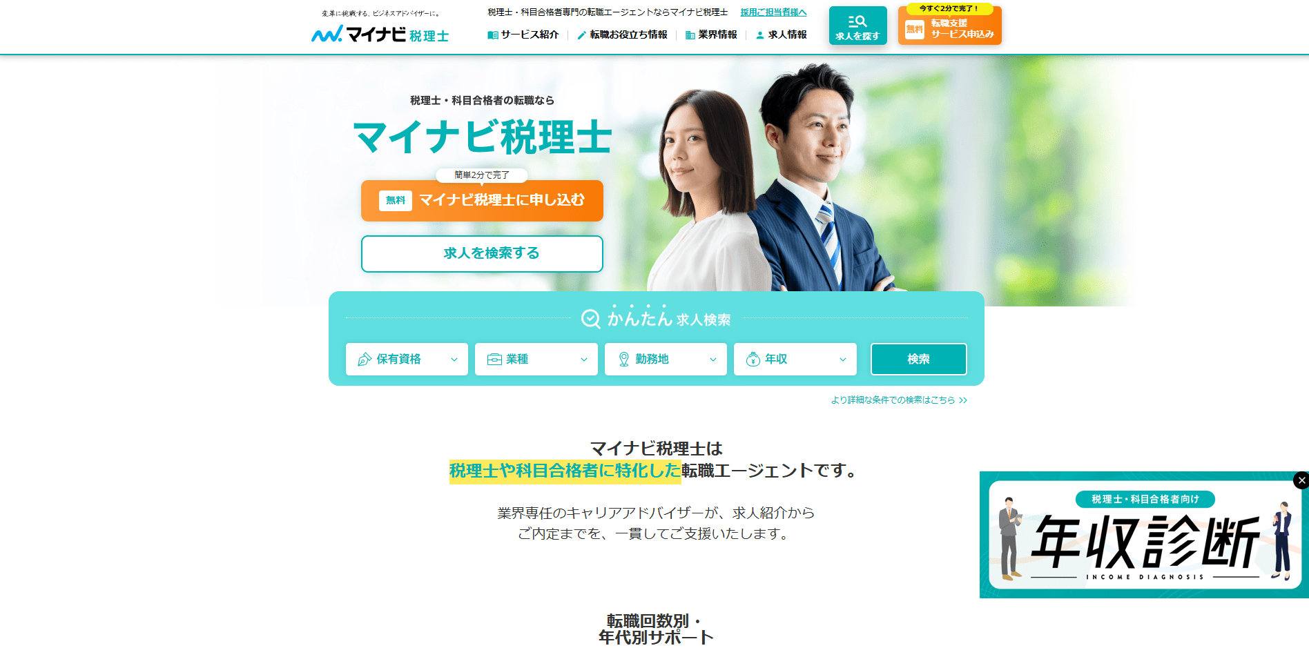 マイナビ税理士は、大手マイナビが運営する税理士専門の転職エージェント。面談満足度95%と適格な求人紹介、履歴書・職務経歴書のアドバイス、面接テクニックの指導を行います。