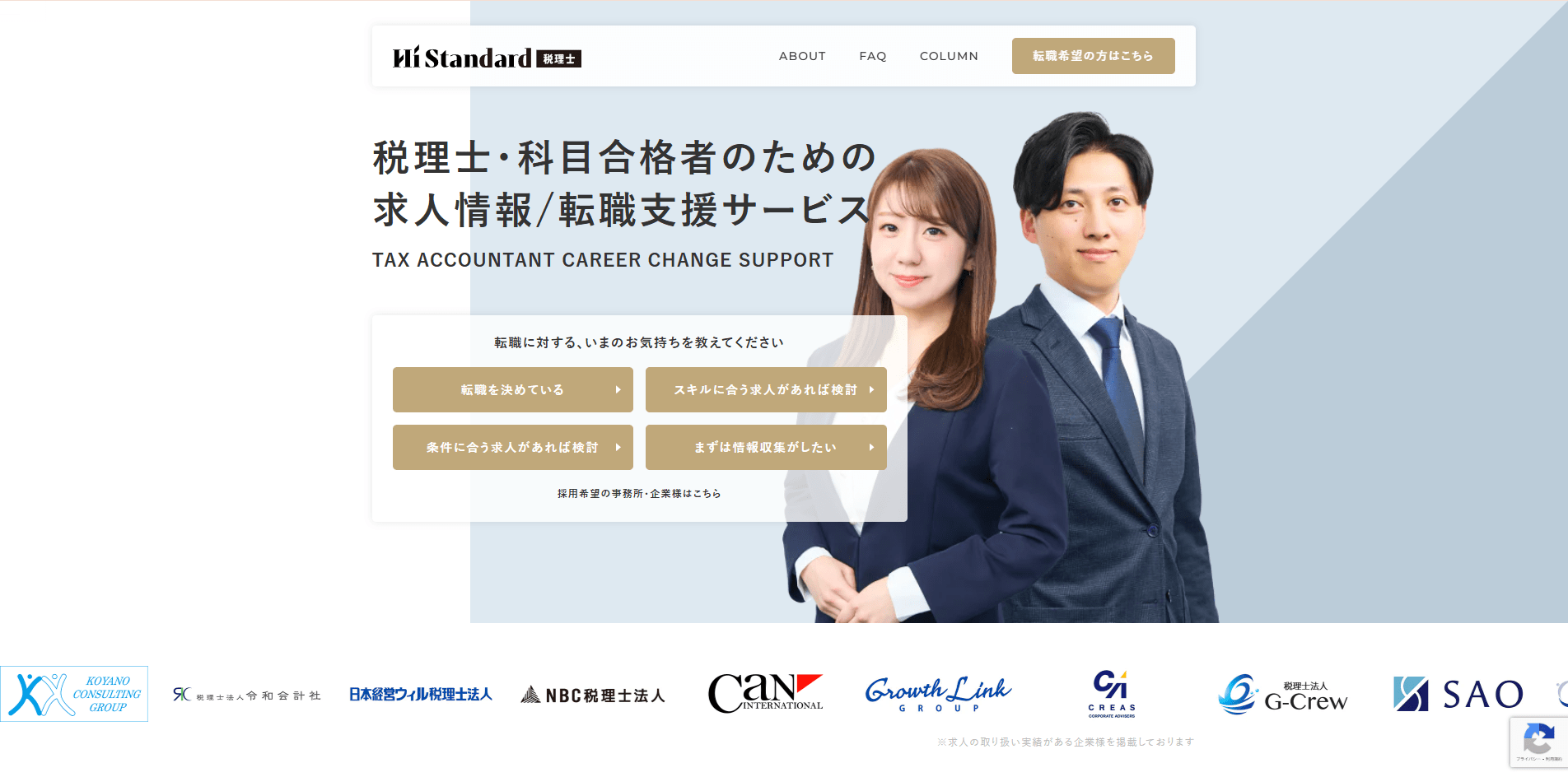 「ハイスタ税理士」は税理士および科目合格者に特化し、専任アドバイザーが個別の希望条件をもとに最適な求人を紹介。専門性とマッチング精度の高さが特長です。