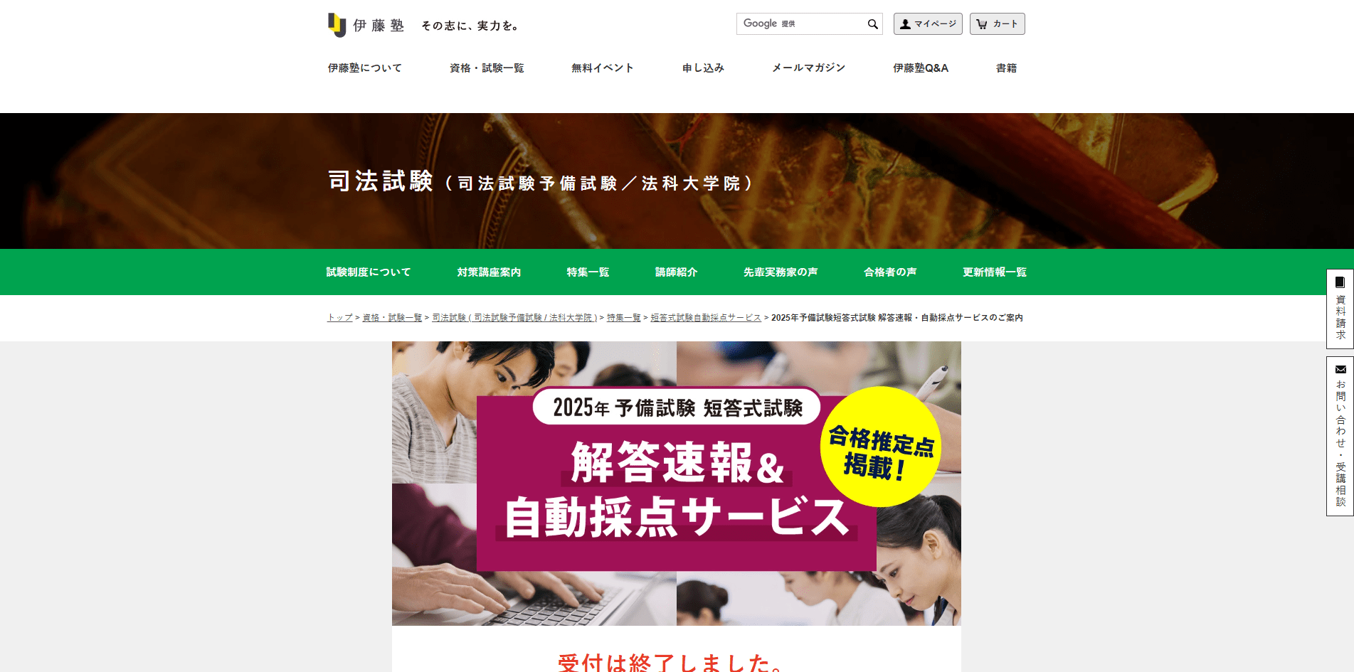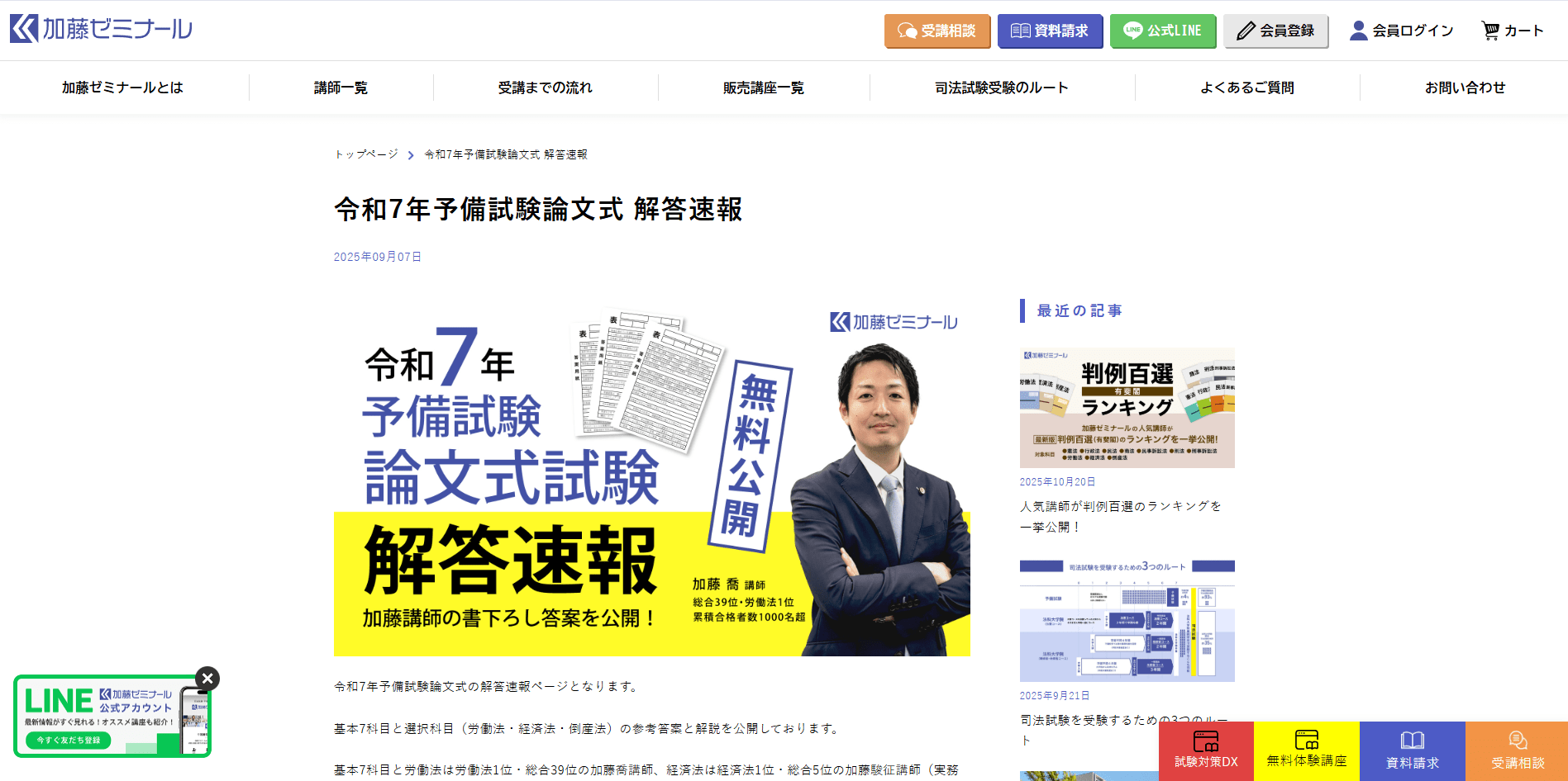 | 解答速報 | 2025年7月20日(日)正午過ぎより順次公開(法律科目) |