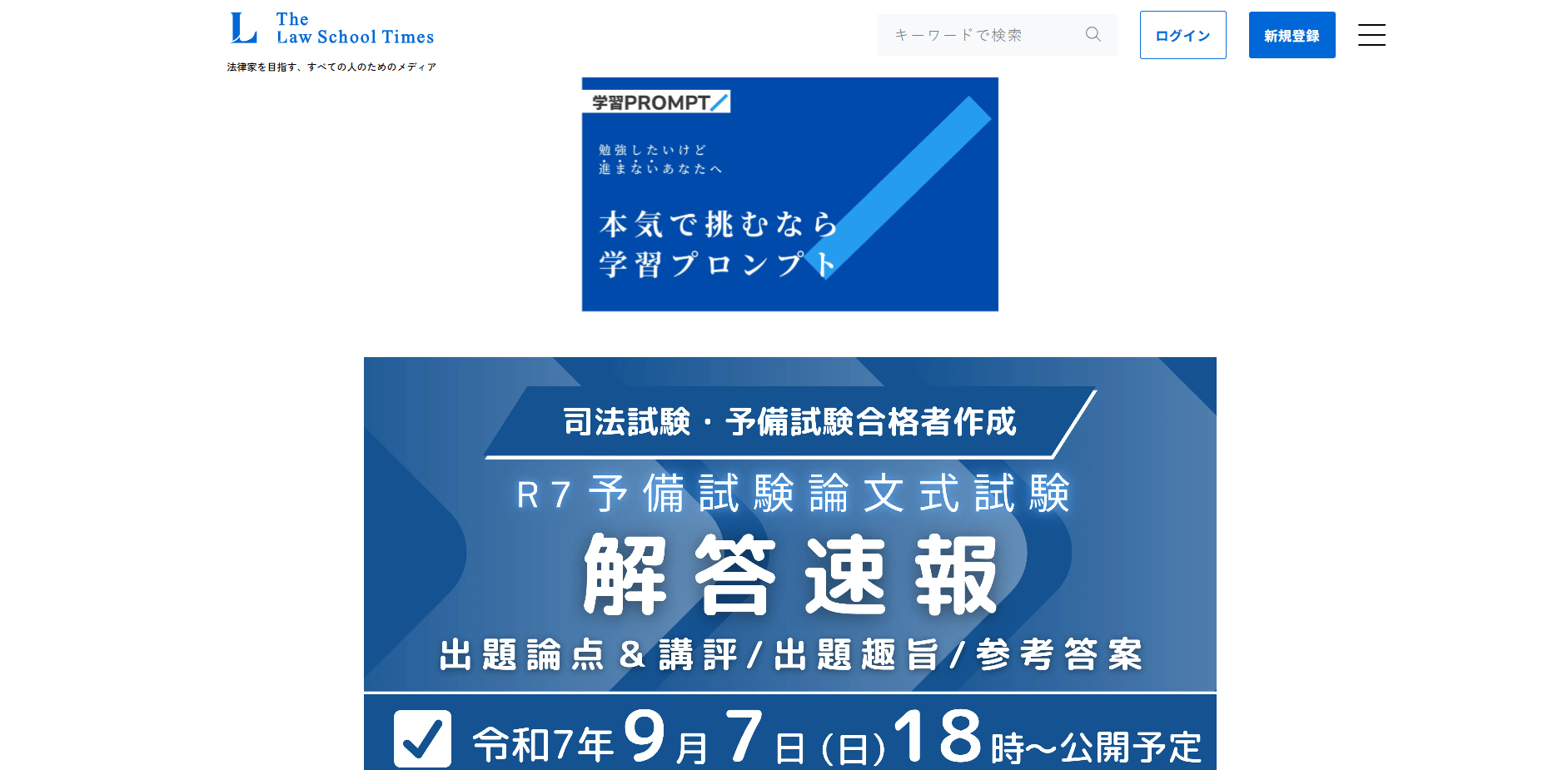 | 解答速報 | 憲法・行政法と、その他の科目(選択科目を除く)で順次公開 |