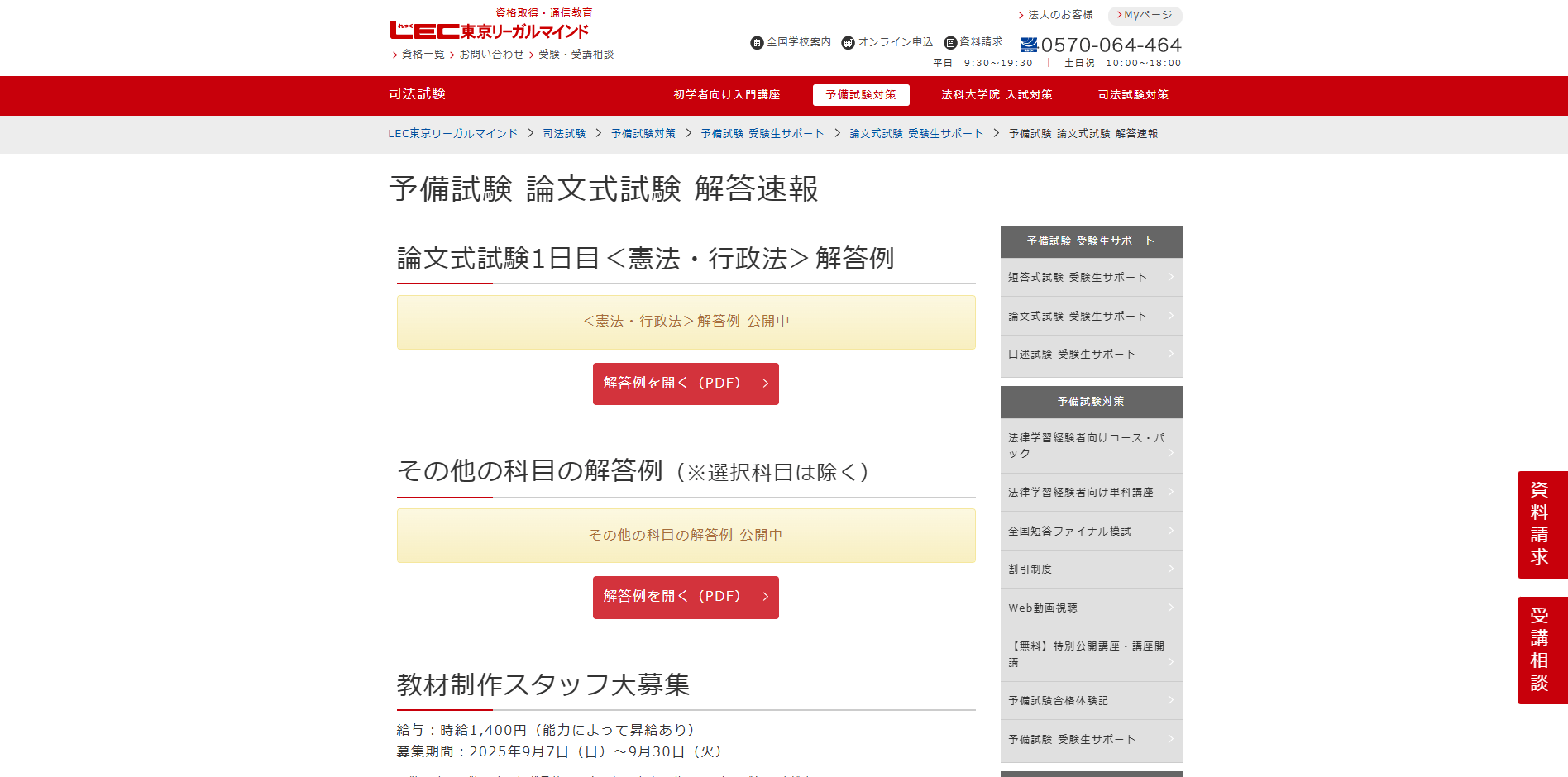 LECでは、憲法・行政法と、その他の科目(選択科目を除く)について解答速報が公開されました。