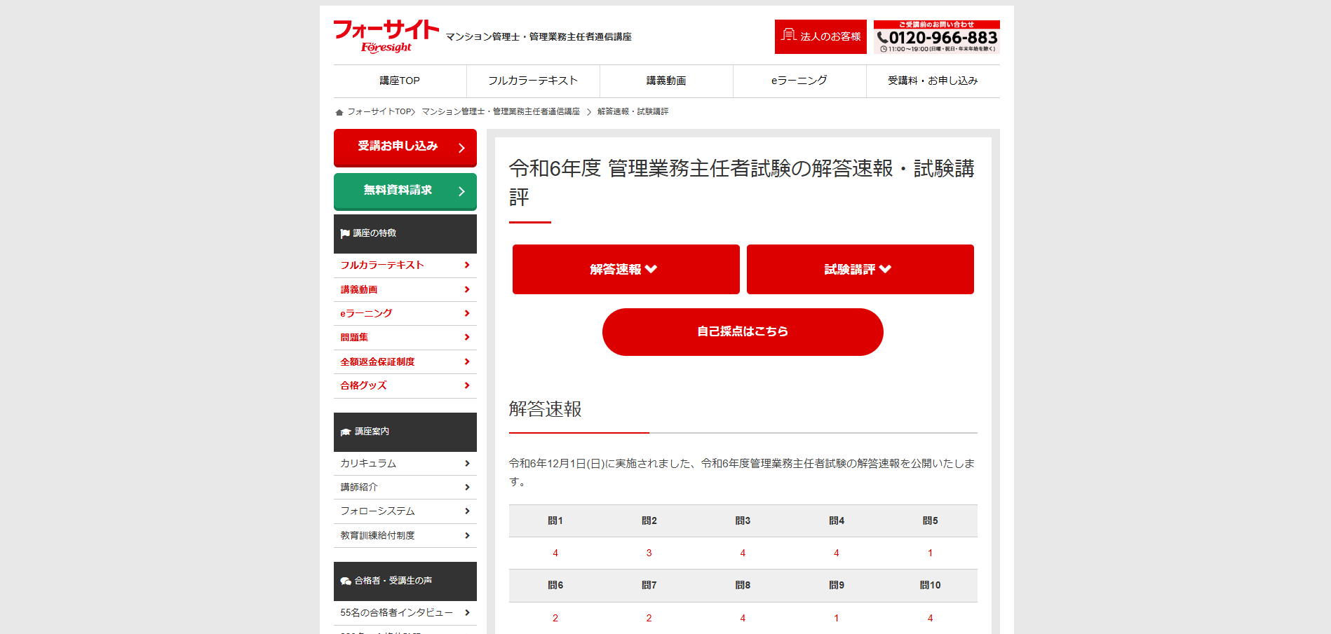 2024年の情報として、フォーサイトでは解答速報が順次公開されました。