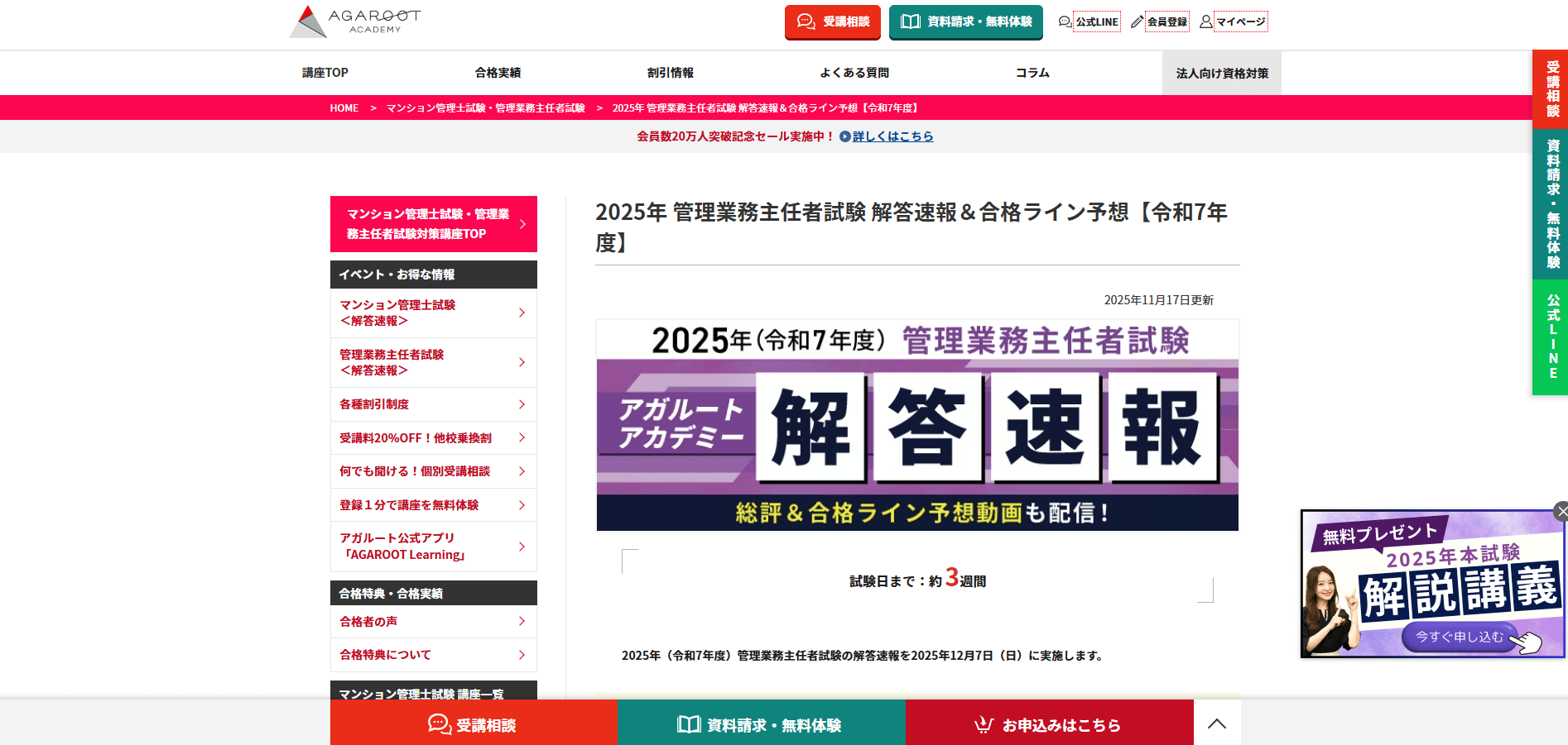 アガルートでは、試験当日の12月7日(日)16:00頃より解答速報が順次公開されます。