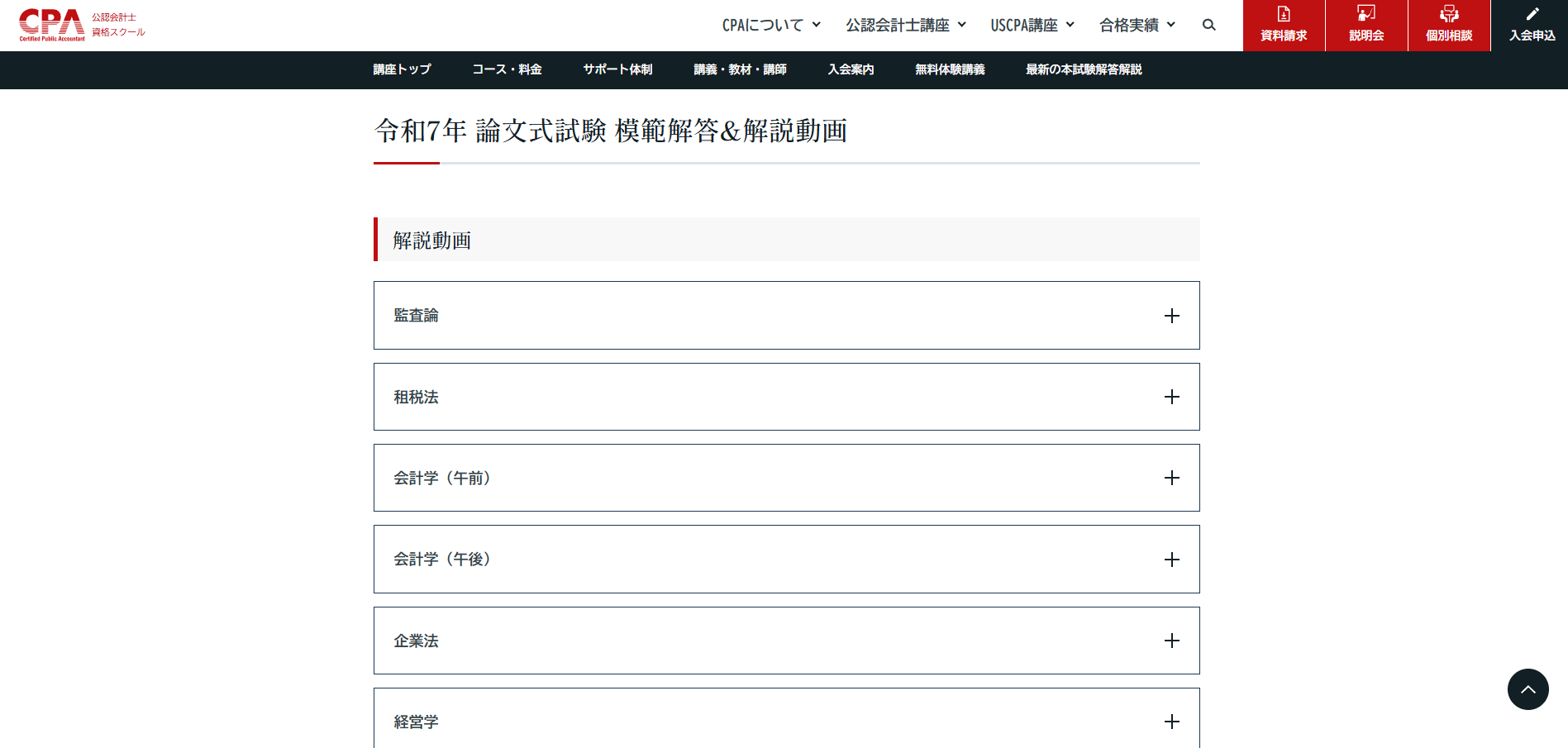 CPAでは、令和7年度の第Ⅱ回短答式試験の当日5月25日から、解説動画が順次公開されました。