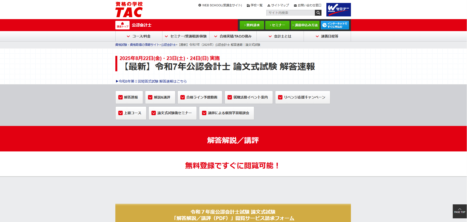 | 速報URL | https://www.tac-school.co.jp/kouza_kaikei/sokuhou_ronbun.html |