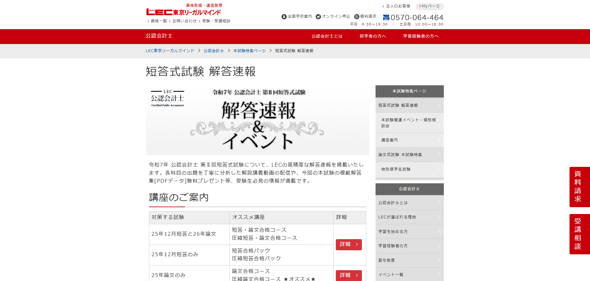 LECでは、令和7年度の第Ⅱ回短答式試験後、解答速報が順次公開されました。