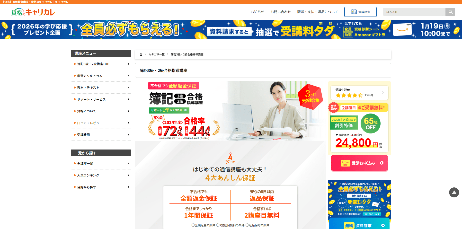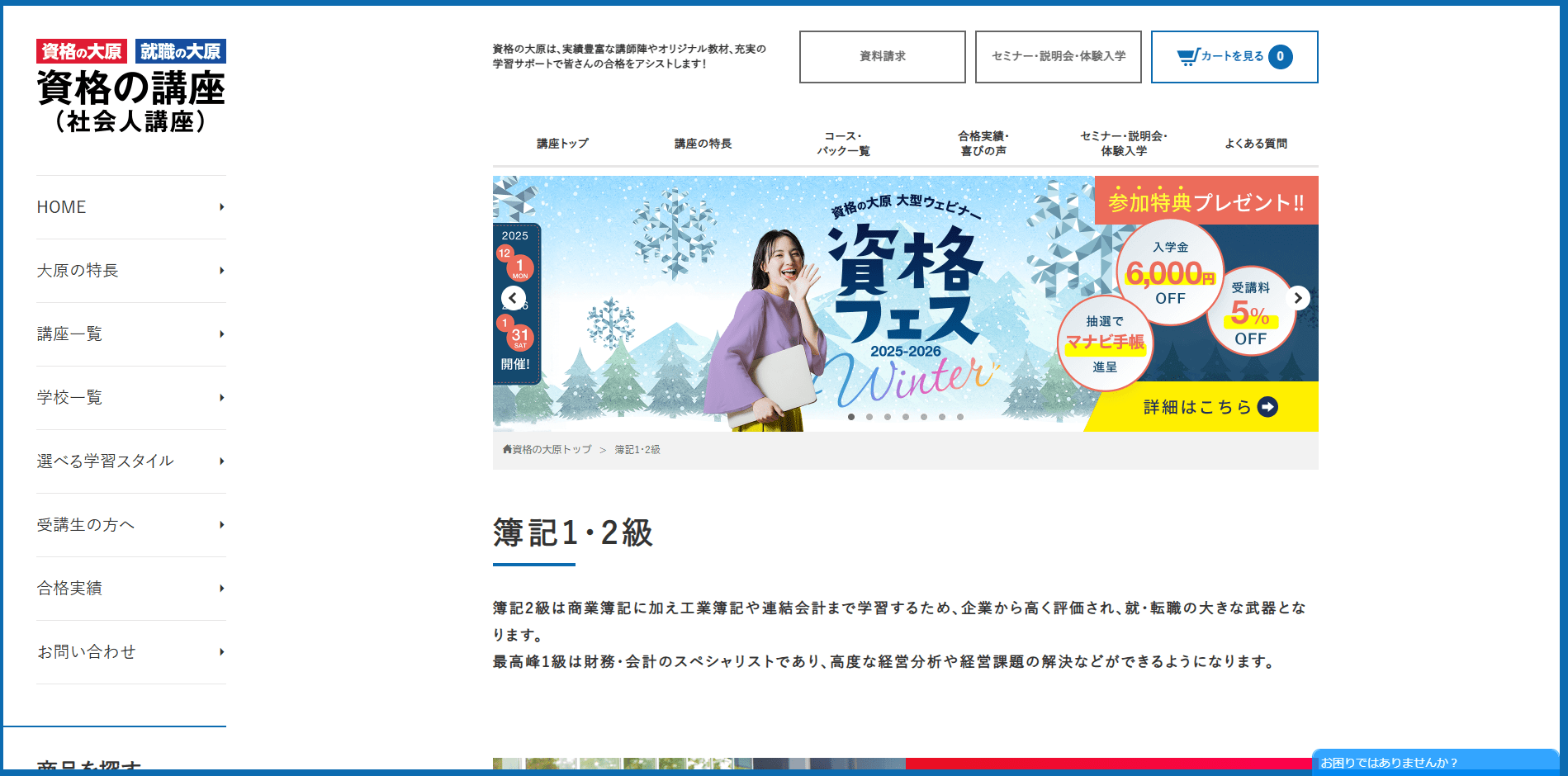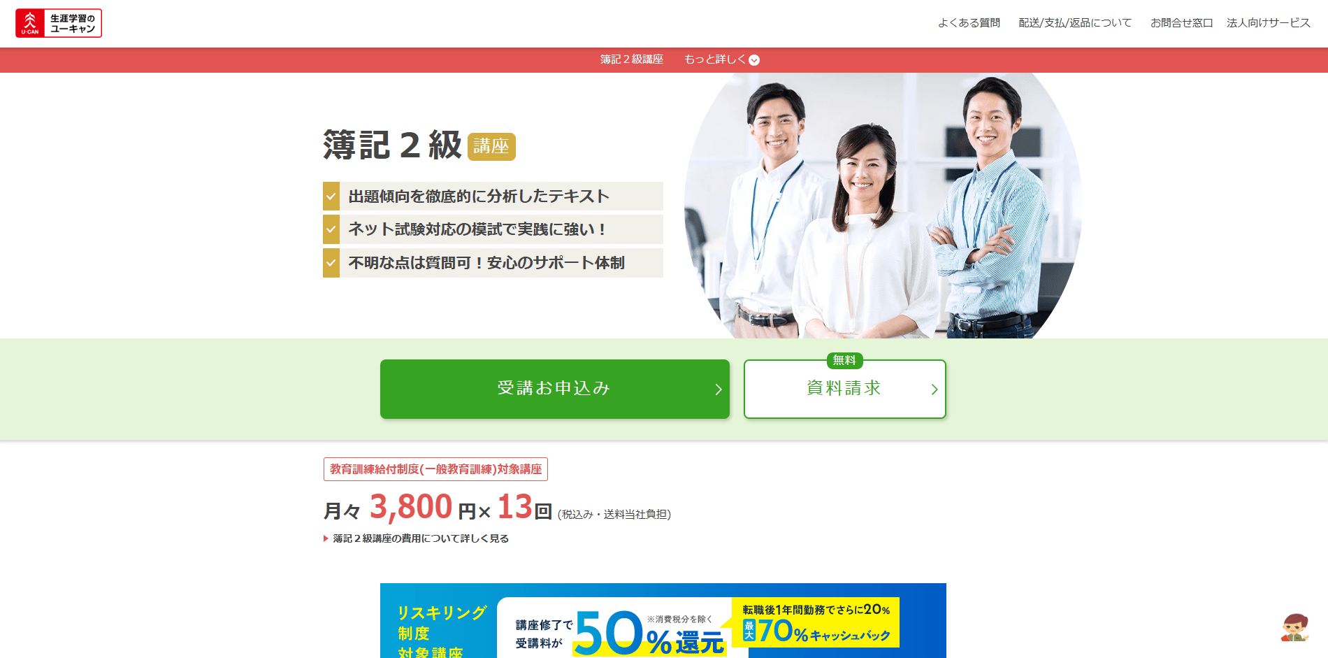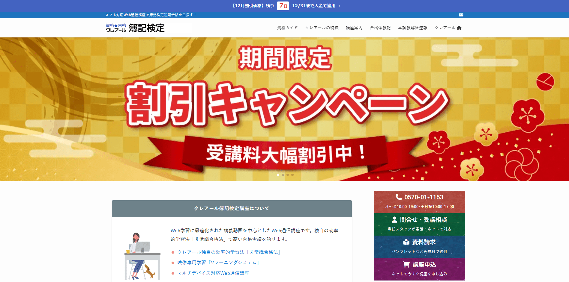 | 特典・キャンペーン | 再受講割引、新春キャンペーン割引など |