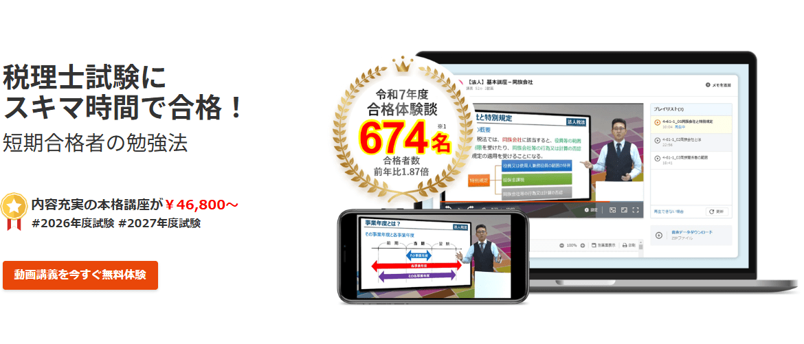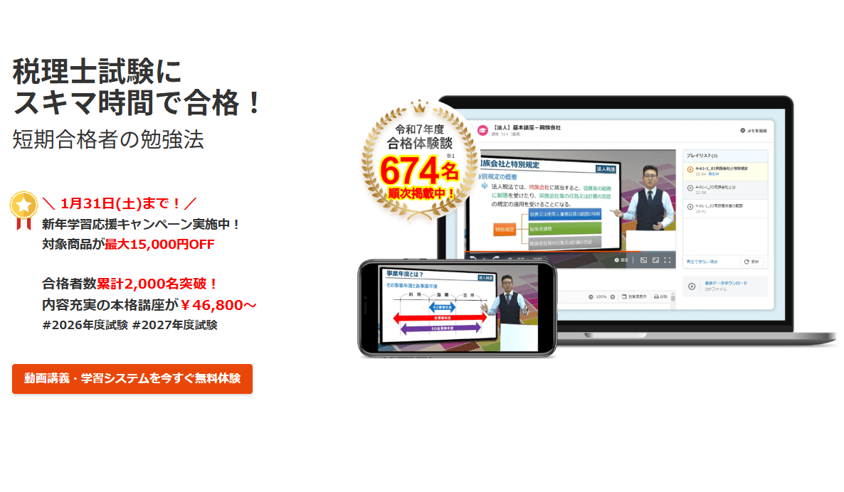 スタディングの税理士試験講座は、短期間で合格した人々の勉強法を徹底的に研究することで開発されたオンライン講座です。