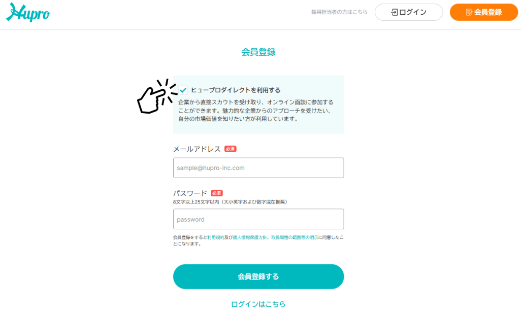 なお、「ヒュープロダイレクト」は、ヒュープロの会員登録後に利用できるサービスです。