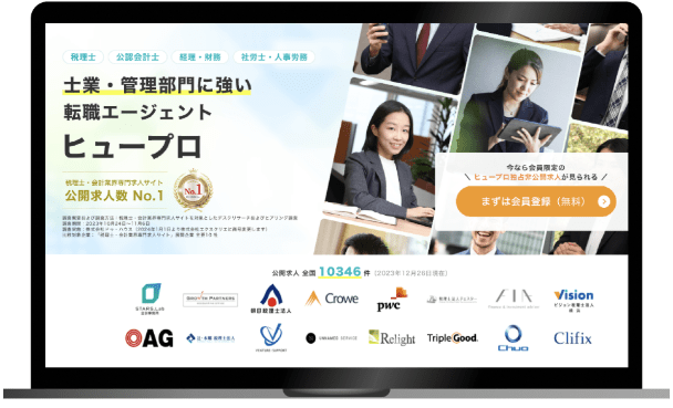 ヒュープロは、士業・管理(コーポレート)部門に特化した転職支援サービスです。